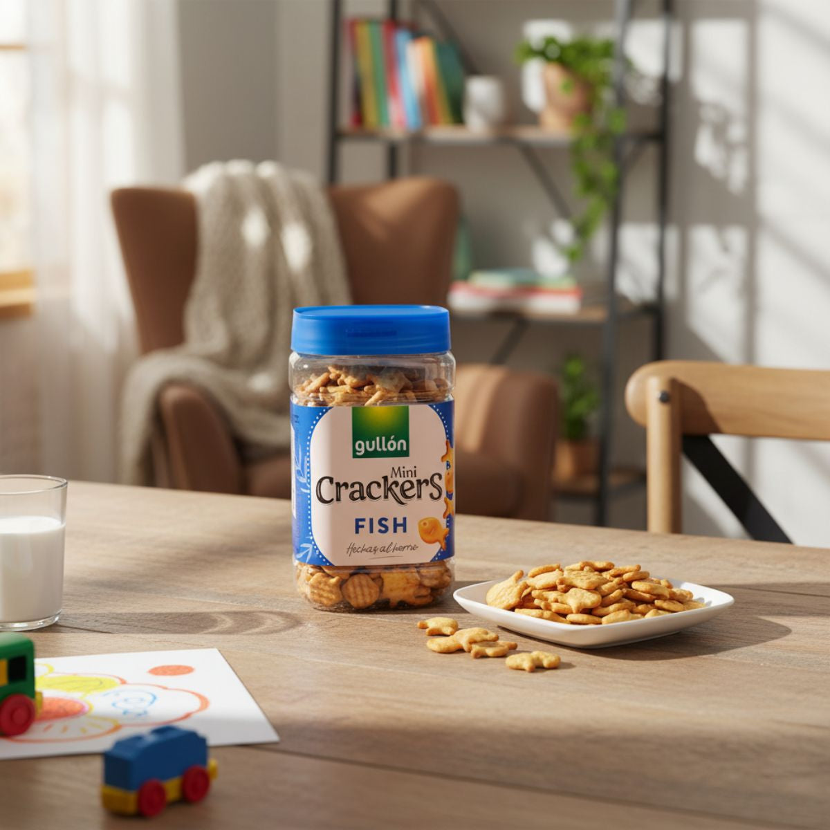 Τα Gullon Mini Fish είναι τα ιδανικά αλμυρά μπισκοτάκια για μικρούς… αλλά και μεγάλους! Με παιχνιδιάρικο σχήμα ψαριού και υπέροχη τραγανή υφή, αποτελούν το τέλειο σνακ για το σχολείο, τη βόλτα ή το σπίτι.