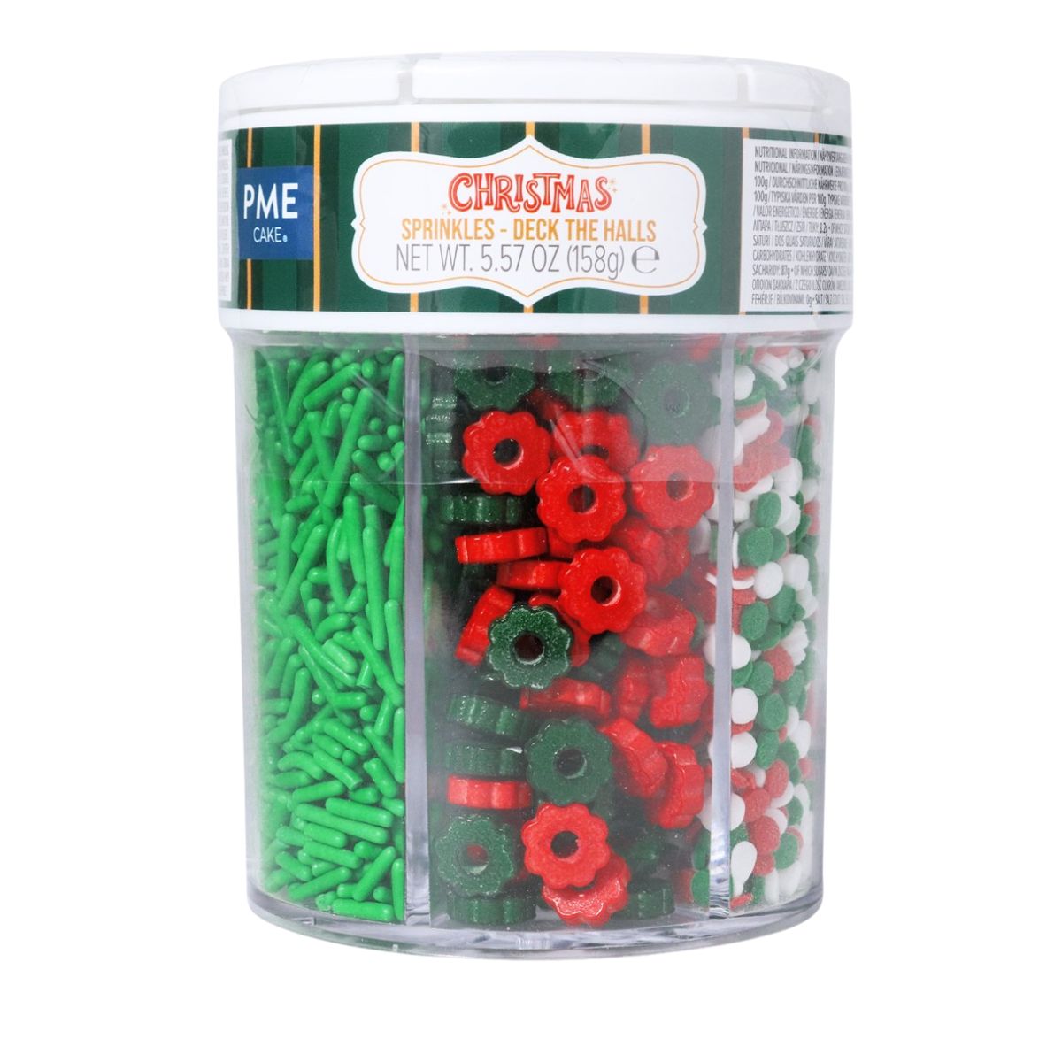 Ετοιμάστε τα γλυκά σας για τις γιορτές με το PME Christmas Deck The Halls Sprinkle Set που περιλαμβάνει μια πανέμορφη ποικιλία από Χριστουγεννιάτικα διακοσμητικά springles που θα γεμίσουν τα γλυκά σας με μαγεία και χρώμα. Ιδανικό για κάθε γιορτινή δημιουργία, το σετ προσφέρει τα τέλεια υλικά για να διακοσμήσετε τα γλυκίσματά σας με ένα παιχνιδιάρικο και χριστουγεννιάτικο στυλ. Δεν είναι μόνο όμορφα, αλλά και εξαιρετικά νόστιμα!