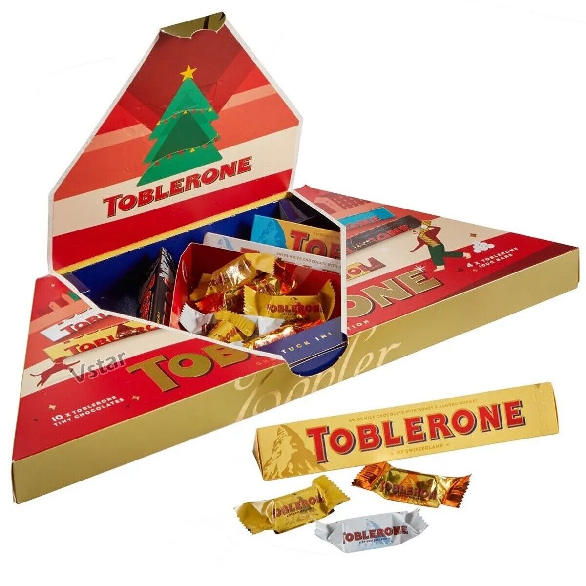 Το τριγωνικό χριστουγεννιάτικο ημερολόγιο Toblerone είναι αρκετά εντυπωσιακό και τέλειο για οικογένεια και φίλους! Πίσω από κάθε πόρτα είναι μια εορταστική σοκολατένια έκπληξη. Μια ποικιλία από ελβετικές σοκολάτες γάλακτος, λευκές σοκολάτες και σοκολάτες γάλακτος με αλατισμένα καραμελωμένα αμύγδαλα, η κάθε μια με μέλι και νουγκατίνα αμυγδάλου.