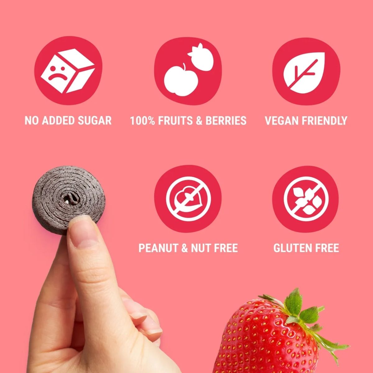 Τα fruit rolls με μήλο και φράουλα της Bob Snails είναι μια φυσική και θρεπτική επιλογή, φτιαγμένα από πραγματικά φρούτα και μούρα, χωρίς προσθήκη ζάχαρης, συντηρητικών, τεχνητών χρωμάτων ή αρωμάτων. Ιδανικά για μικρούς και μεγάλους αποτελούν μια υγιεινή εναλλακτική για σνακ — είτε είσαι καθ’ οδόν, στο σχολείο ή στη δουλειά. Και το να τα τρως; Τόσο διασκεδαστικό! Σκίσε, δάγκωσε ή ξετύλιξε τα σιγά-σιγά για να κρατήσει η φρουτένια απόλαυση ακόμη περισσότερο. Το προϊόν είναι κατάλληλο και για vegans.