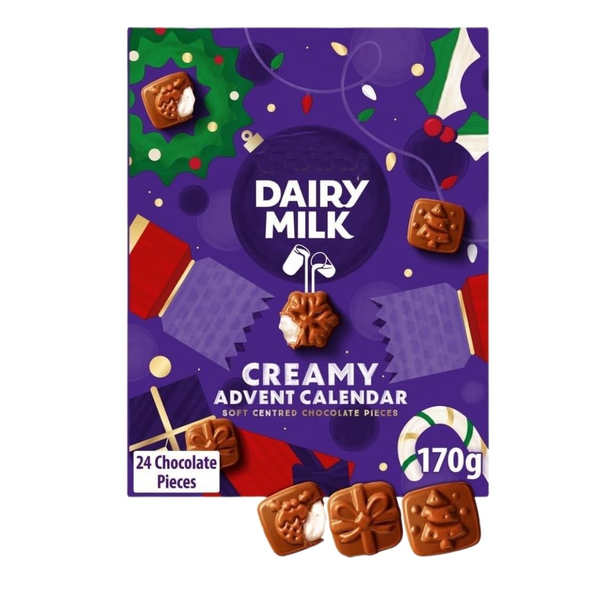 Μετρήστε τις μέρες μέχρι τα Χριστούγεννα με το Cadbury Dairy Milk Creamy Advent Calendar. Ανοίξτε κάθε μέρα ένα νέο παραθυράκι και ανακαλύψτε ένα απαλό, κρεμώδες κομμάτι σοκολάτας Cadbury Dairy Milk – η κλασική, αναγνωρίσιμη γεύση που κάνει τη σεζόν ακόμα πιο ξεχωριστή. Ιδανικό για να γιορτάσετε την παραδοσιακή εορταστική συνήθεια. Το Advent Calendar περιέχει απαλά, κρεμώδη κομμάτια σοκολάτας, με μια ακόμα πιο ιδιαίτερη έκπληξη ανήμερα των Χριστουγέννων! Ιδανικό δώρο για κάποιον ξεχωριστό!