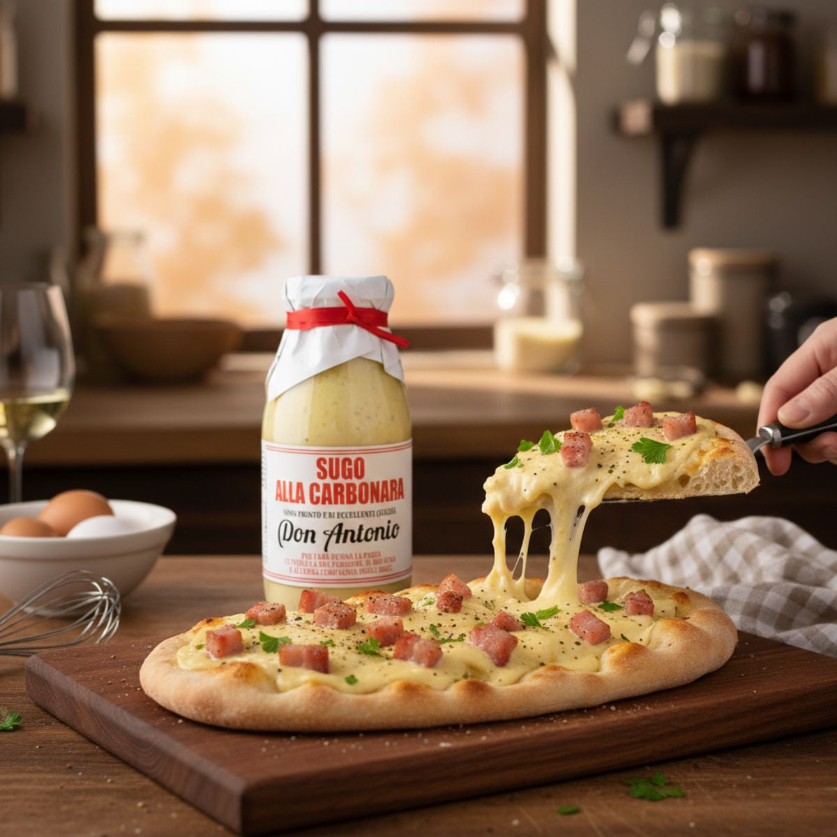 Αυτή η πικάντικη, κρεμώδης σάλτσα Alla Carbonara χρειάζεται μόνο ζυμαρικά για να σερβιριστεί αμέσως. Μικρά κομμάτια παντσέτας προσθέτουν λίγη επιπλέον τραγανότητα. Μια υπέροχη, έτοιμη σάλτσα με την υπογραφή της Don Antonio για να δημιουργήσετε ένα υπέροχο τραπέζι σε σας και τα αγαπημένα σας πρόσωπα. Πιάτα με δυνατό, αυθεντικό ιταλικό χαρακτήρα, γεμάτα αρώματα και γεύσεις!