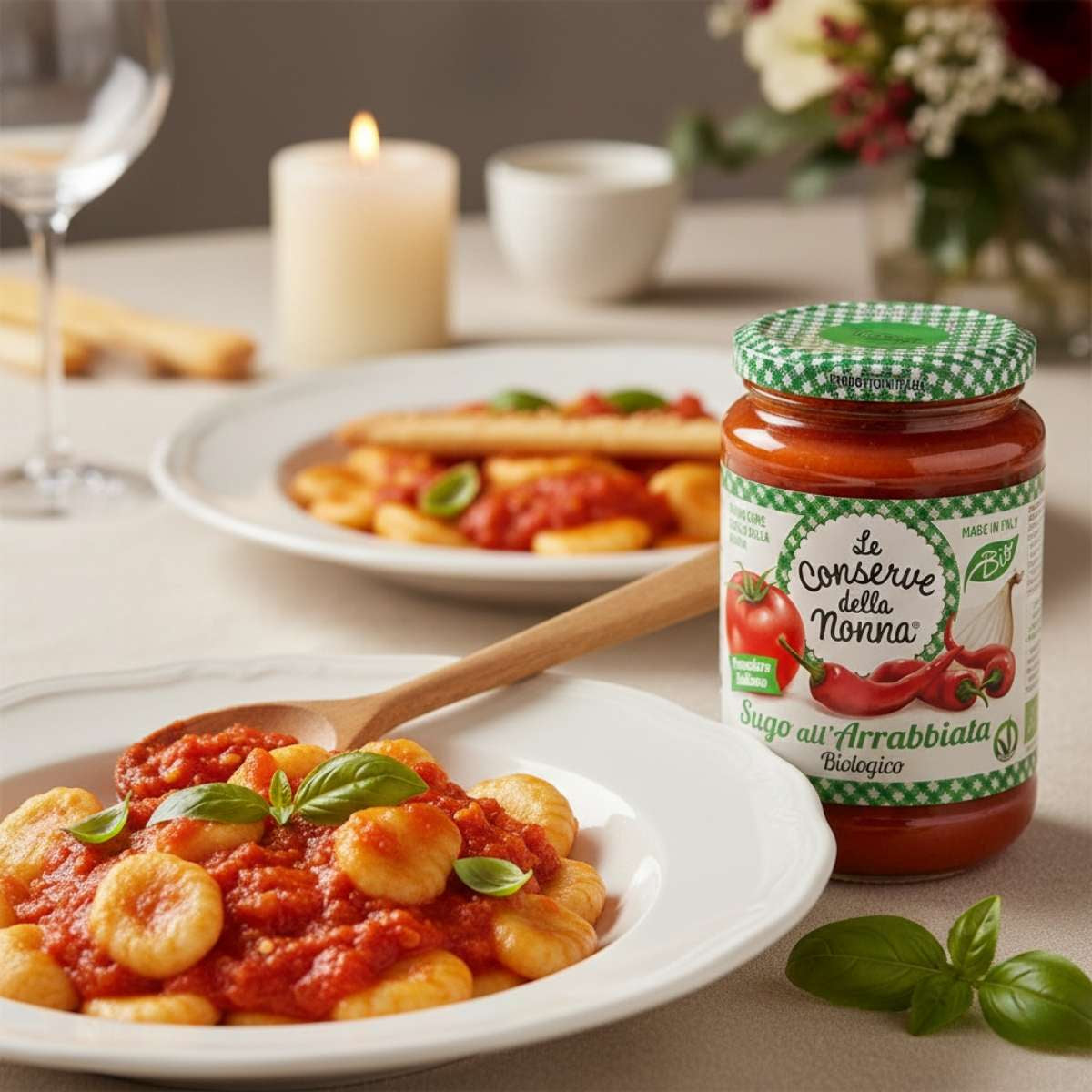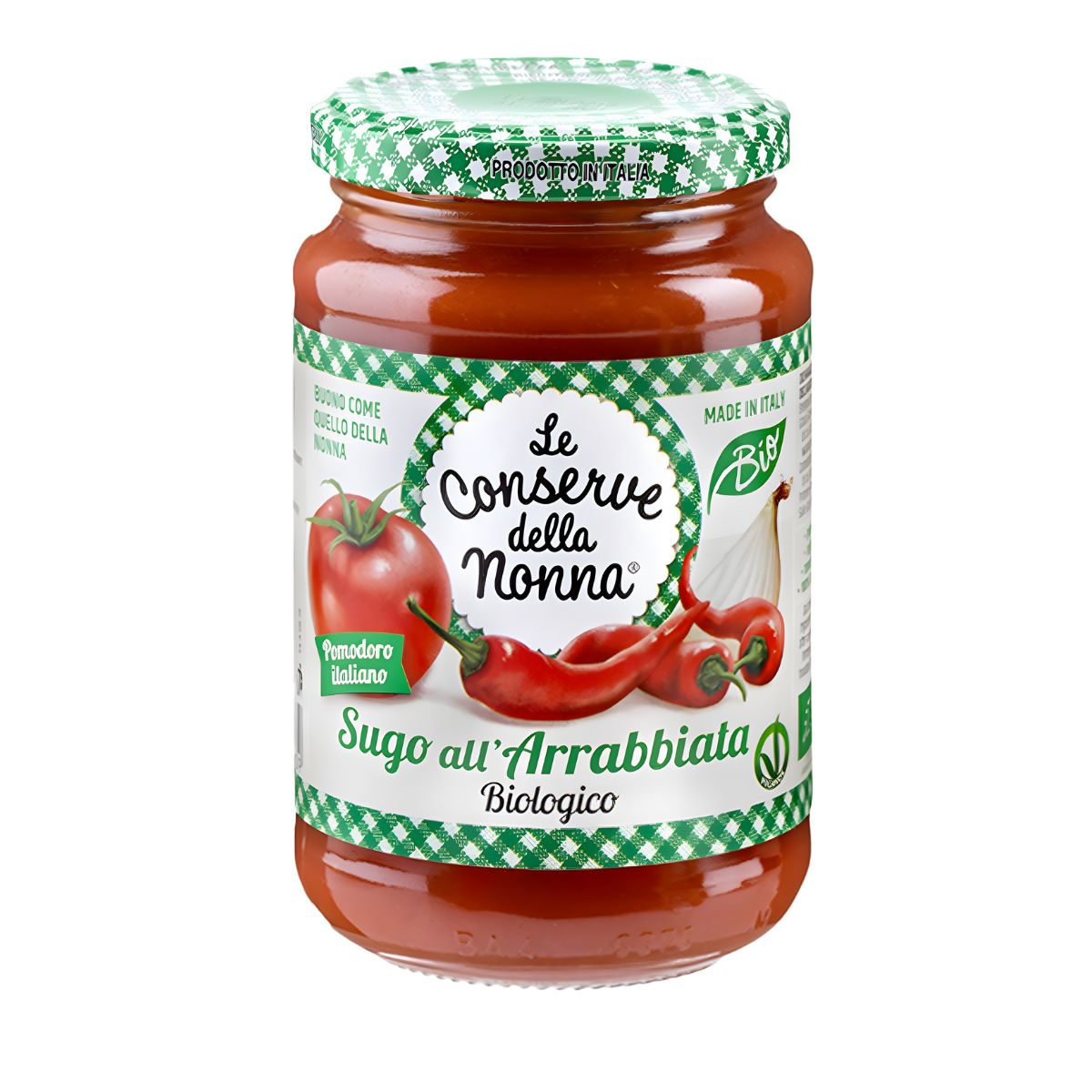 Μία από τις πιο αγαπημένες παραδοσιακές σάλτσες, παρασκευασμένη με βιολογικά συστατικά. Η σάλτσα Arrabbiata, ή sugo all’arrabbiata στα ιταλικά, είναι μια πικάντικη σάλτσα για ζυμαρικά από σκόρδο, ντομάτες και αποξηραμένες κόκκινες καυτερές πιπεριές, μαγειρεμένα σε ελαιόλαδο. Οι ντομάτες και οι πιπεριές συλλέγονται όταν είναι τέλεια ώριμες: το αποτέλεσμα είναι μια σάλτσα με πλούσια αλλά φυσική γεύση με την υπογραφή της Le Conserve Della Nonna. Δημιουργήστε πιάτα με δυνατό, αυθεντικό ιταλικό χαρακτήρα, γεμάτα μεσογειακά αρώματα και γεύσεις!