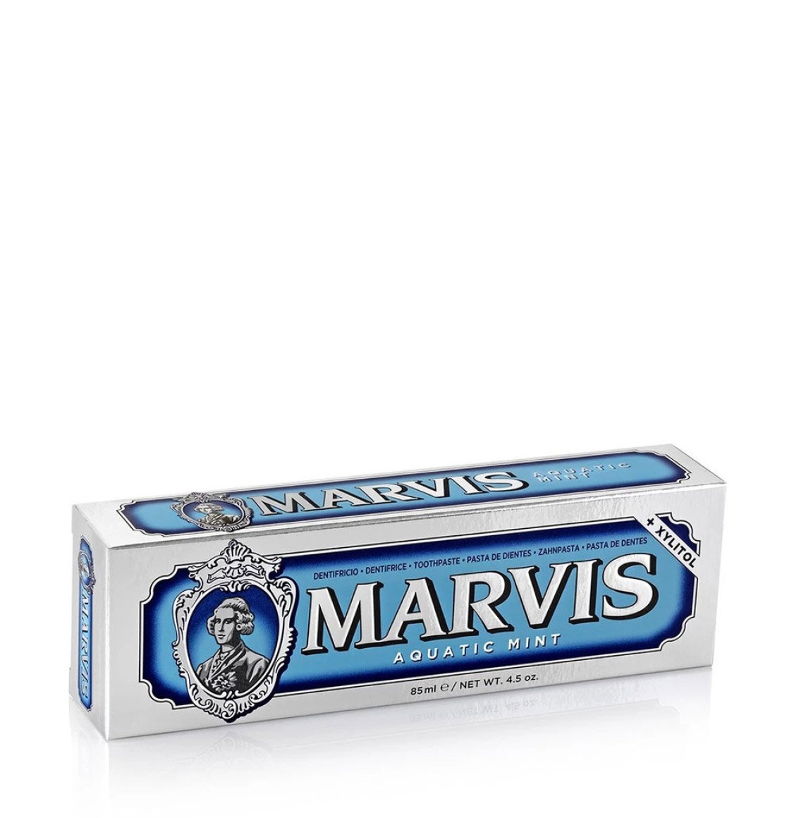 Ένα φύσημα, θαλασσινό αεράκι, κρυστάλλινο νερό, ντελικάτη φρεσκάδα μέντας, αυτή είναι η αίσθηση ενός καθαρού, ζωντανού κύματος που πάλλεται μέσα στο σωλήνα της Marvis Aquatic Mint. Η κλασική φόρμουλα Marvis έχει σχεδιαστεί για λευκά, προστατευμένα δόντια και ολοήμερη φρέσκια αναπνοή, καθώς και για την πρόληψη της τερηδόνας, της πέτρας και της πλάκας. Η οδοντόκρεμα Marvis, σε συσκευασία vintage φαρμακείου, φτιάχνεται στη Φλωρεντία της Ιταλίας και για γενιές ολόκληρες κερδίζει την εμπιστοσύνη και την αγάπη των Ιταλών.