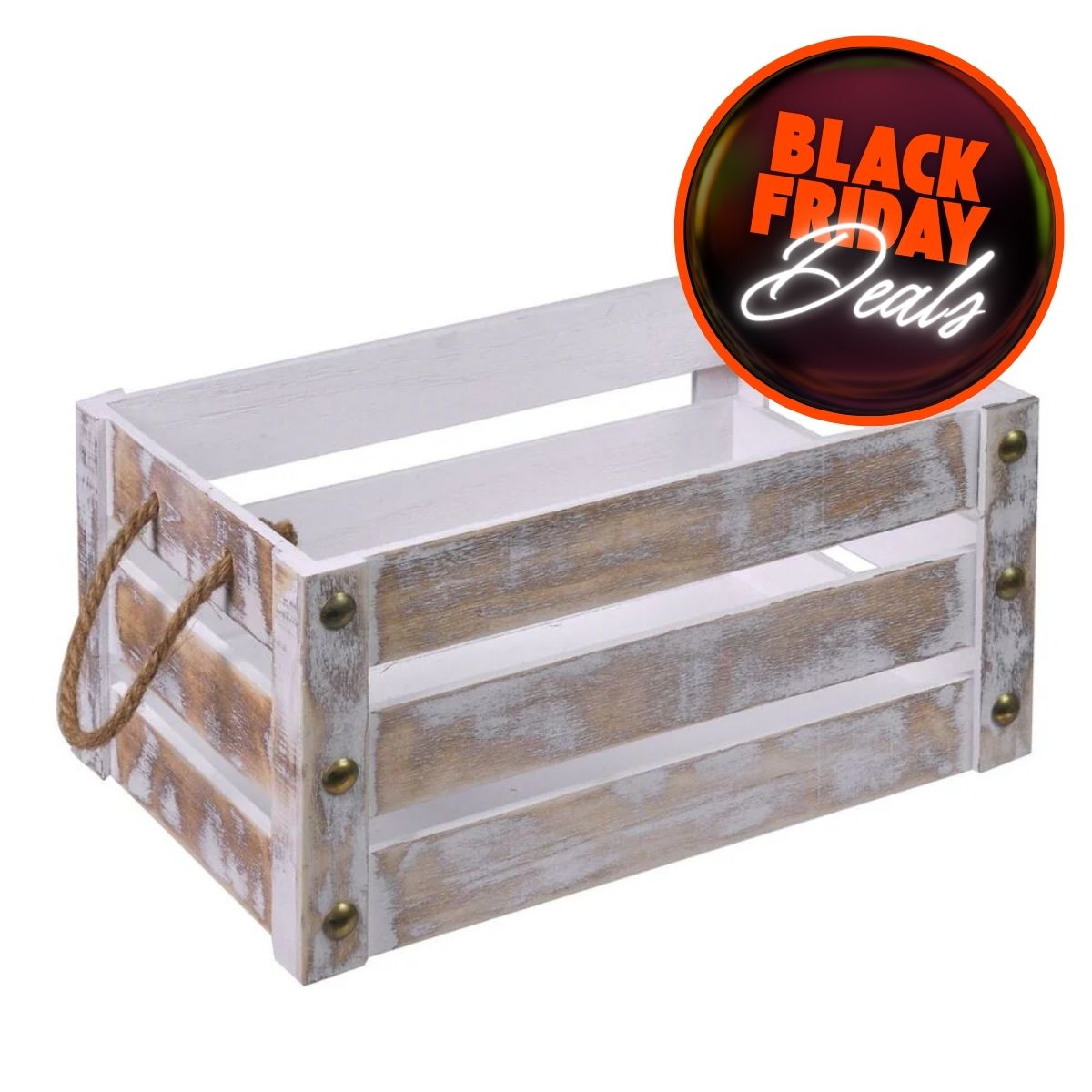 Η κατασκευή του από ξύλο υψηλής ποιότητας και οι ενισχυμένες γωνίες του το καθιστούν ιδιαίτερα όμορφο, ελαφρύ και ανθεκτικό. Χάρις στα χερούλια του από σχοινί και το μεγαλύτερο μέγεθος του μπορείς να αποθηκεύσεις και να μεταφέρεις τα πάντα, από τα βιβλία και τα ρούχα σου μέχρι τα κεριά και τις γλάστρες σου. Tο λευκοκαφέ χρώμα του με τα σχέδια παλαίωσης και τα χρυσά καρφιά το μετατρέπουν σε ένα πιο εκκεντρικό κομμάτι που θα ταιριάξει φανταστικά με την πιο γήινη αισθητική σου.
