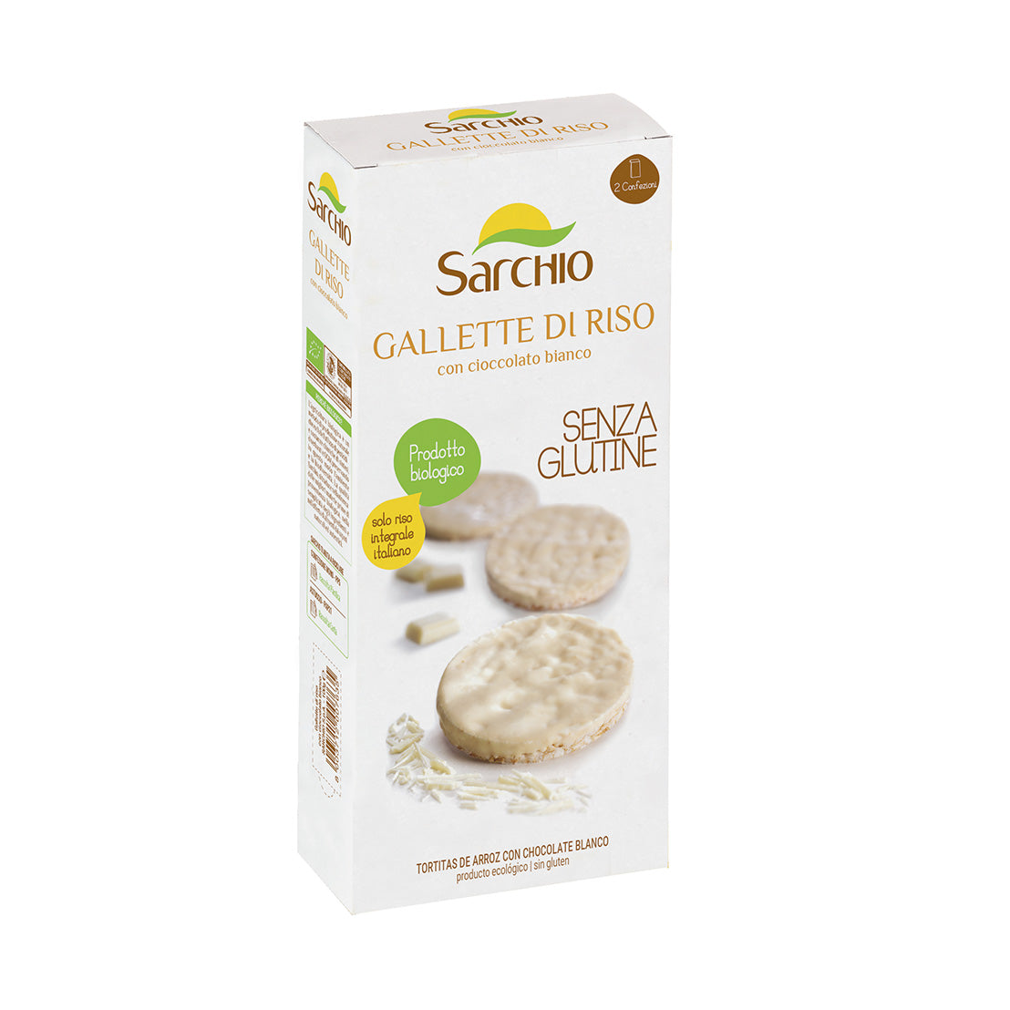 Ρυζογκοφρέτα με Λευκή Σοκολάτα Βιολογική Χωρίς Γλουτένη Sarchio Gallette di Riso 100g
