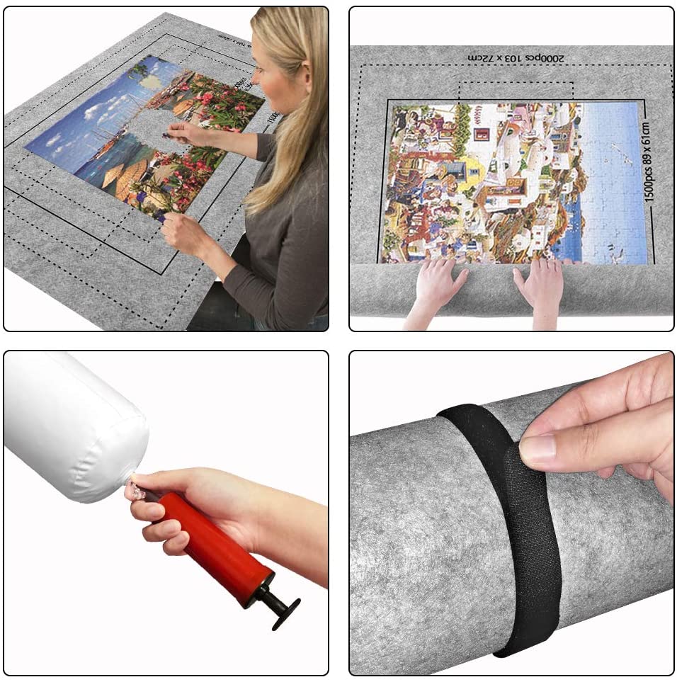 Με το ρολό παζλ από την BangShou μπορείτε να μεταφέρετε και να αποθηκεύσετε με ασφάλεια το μεγάλο σας παζλ με 1000/1500/2000 κομμάτια. Υπάρχουν ορθογώνιες και κυκλικές περιοχές εργασίας για παζλ διαφορετικών μεγεθών, οι οποίες μπορούν εύκολα να προσαρμοστούν σε διαφορετικούς τύπους παζλ. Ένα φουσκωτό ρολό τυλίγεται μαζί με το ειδικό, αντιολισθητικό χαλάκι από βελτιωμένη τσόχα ανώτερης ποιότητας, χρησιμοποιώντας τα συνδετικά λουριά το παζλ μπορεί να συσκευαστεί με ασφάλεια και να αποθηκευτεί μέχρι την επόμενη φορά.