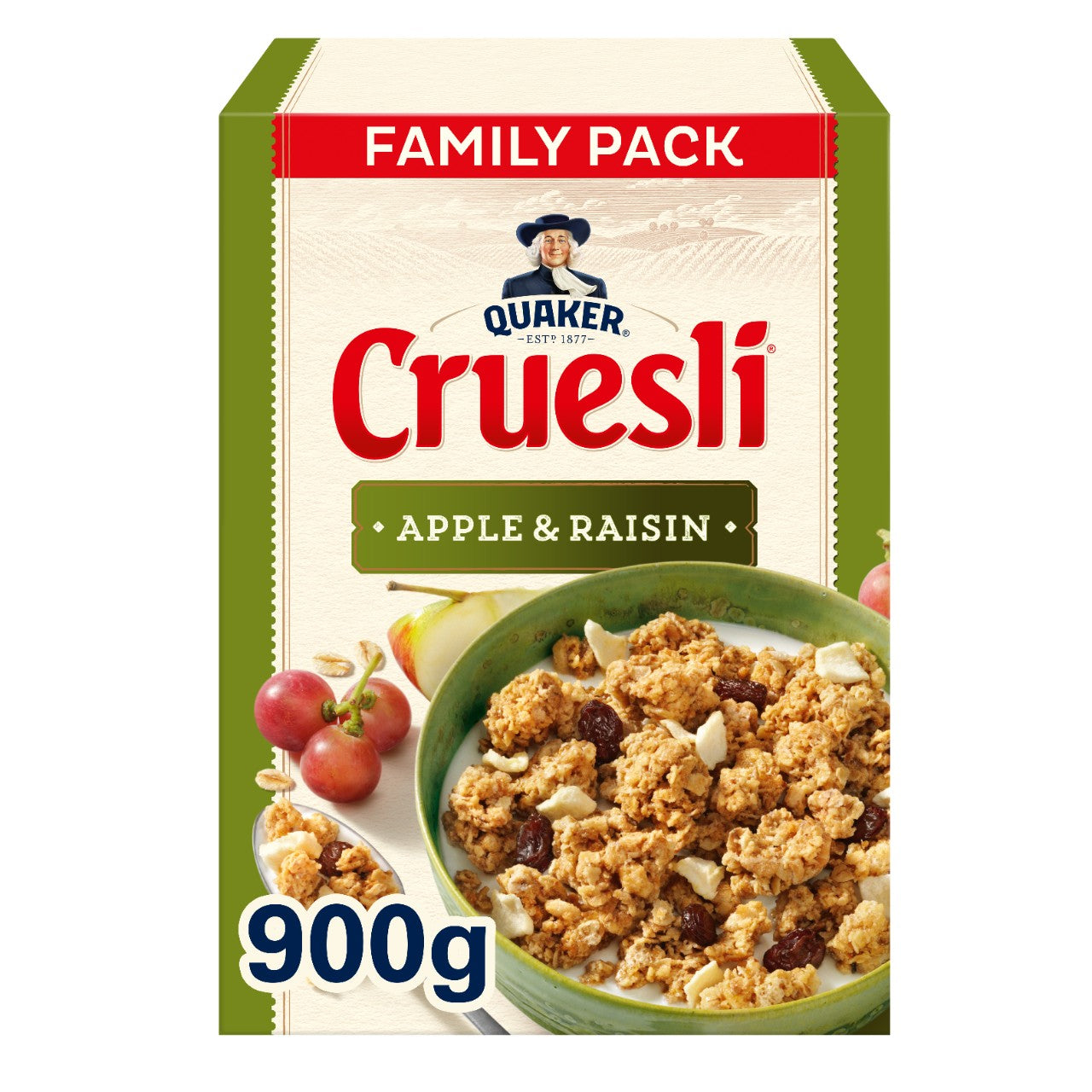 Το Quaker Cruesli® Apple Raisin είναι ένα λαχταριστό μείγμα από τραγανή, ψητή βρώμη ολικής αλέσεως, σιτάρι και καρπούς. Η γεύση συμπληρώνεται με νόστιμες σταφίδες, κομματάκια μήλου και μια νότα μελιού και έχεις ολοκληρωμένο το αγαπημένο σου πρωινό!