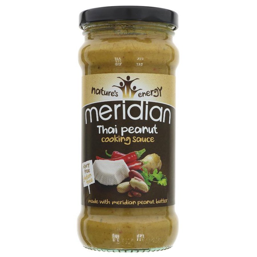 Σάλτσα μαγειρικής ασιατικής κουζίνας Meridian Thai Peanut Cooking Sauce, φτιαγμένη με φυστικοβούτυρο Meridian. Σοτάρετε κοτόπουλο, λαχανικά ή τόφου και περιχύστε την Meridian Thai Peanut Cooking Sauce. Σερβίρεται με ρύζι.