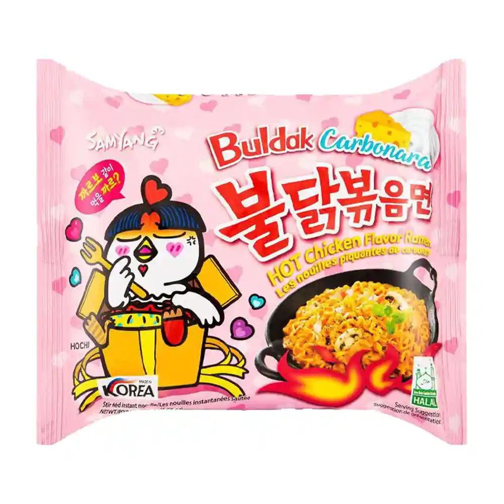 Τα γνωστά και ως ζυμαρικά της φωτιάς, τα Samyang Buldak Hot Chicken Ramen θα σας ενθουσιάσουν και θα ζωντανέψουν τη γεύση σας όταν χρειάζεστε κάτι νόστιμο και γρήγορο! Πόσο μάλλον όταν έχουν λαχταριστή , πλούσια γεύση καρμπονάρα!